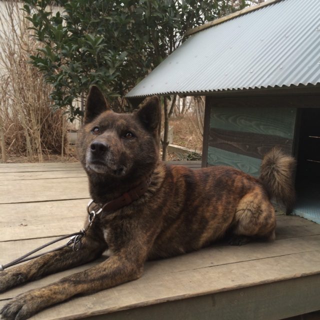 | コメント | 一頭腹で生まれた子なので仔犬の頃から同時期に産まれた子より一回り大きく今体重22キロ、ガッチリとした猪型の甲斐犬です。 |