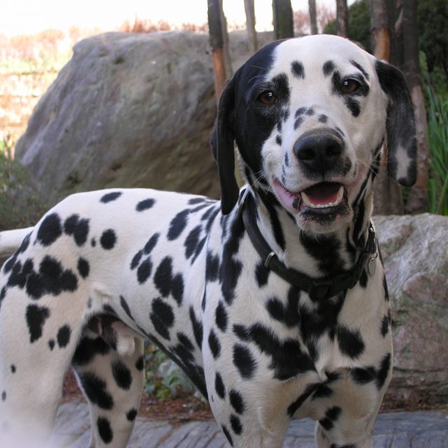 ディズニー映画『101匹のわんちゃん』でおなじみのぶち模様の犬種です。耐久力に富み、活発で、長距離を得意とします。大変頑固なところもあり、知らない人に対しては少々神経質になりがちです。
