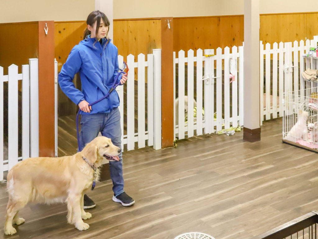 お預かり中はスタッフが責任を持ってお世話をさせていただきます。園内へお散歩にもでかけたり、ワンちゃんもストレスなく過ごせる環境です。
