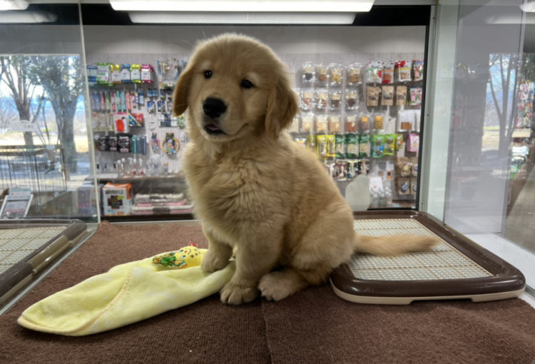 10月31日生まれ ゴールデンレトリーバーのチーズちゃんの子供達が57日を迎えて 店内のお部屋でもご覧頂けるようになりました✨ ご覧頂けるのはこちらの男の子です♪ がっしりした体形 …